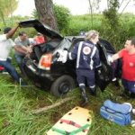 Policiais Militares de Jacarezinho apreenderam um adolescente de 17 anos, por portar arma de fogo, por volta das 12hs de terça feira, 08, na Rua Projetada E, no bairro Nossa Senhora das Graças. rnSegundo denúncia anônima via 190 (COPOM), havia dois elementos em uma motocicleta verde, onde o condutor que usava uma camiseta do time Barcelona, portava uma arma de fogo e ameaçava as pessoas no bairro. A equipe da RPA local (Rádio Patrulha Auto) se deslocou até o bairro. Chegando lá, encontraram os dois suspeitos que não obedeceram a voz de abordagem e colidiram contra a viatura. Na revista pessoal feita no condutor, foi encontrado um revolver calibre 32 e 4 munições intactas. Com o outro suspeito nada foi encontrado.rnDiante do fato, foram encaminhados juntamente com arma de fogo e a motocicleta para delegacia local.